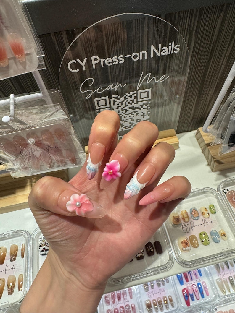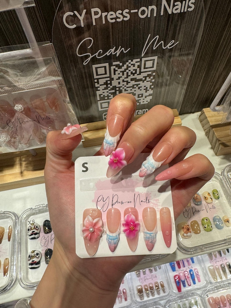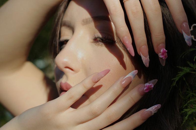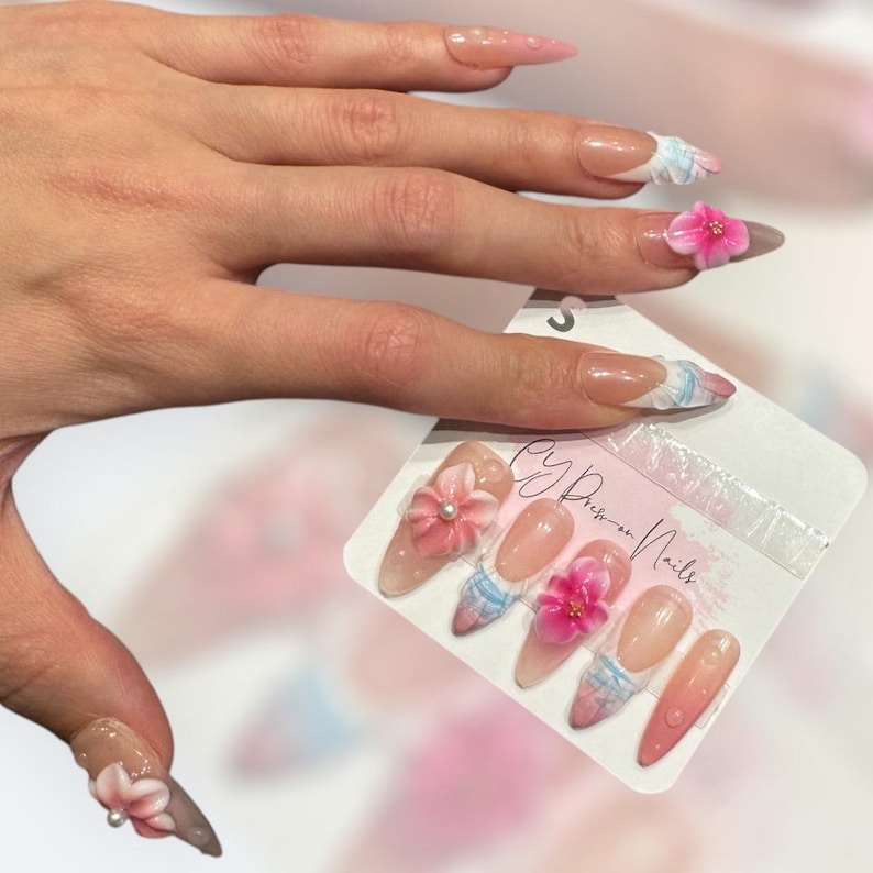 3D Tropical Flowers Beach Trip Must-have Long Almond Bloom Spring Vacation Nails Premium Salon-quality Reusable Handmade Press-on Nails