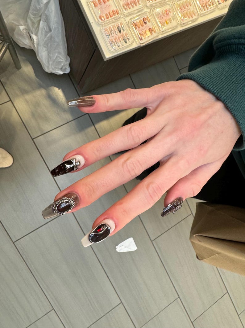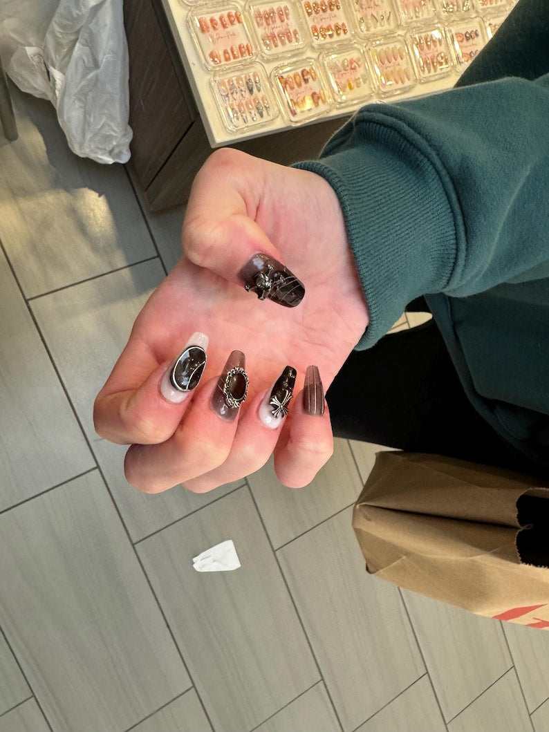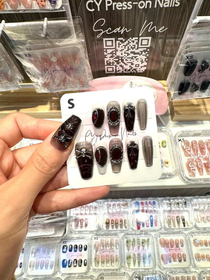 Halloween Nails Burgundy Wine Dark Red Medium Coffin Salon-quality Reusable Handmade Press-on Nails Easy to Apply DIY Nails