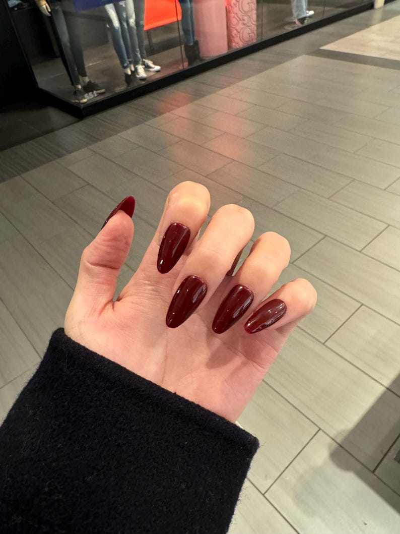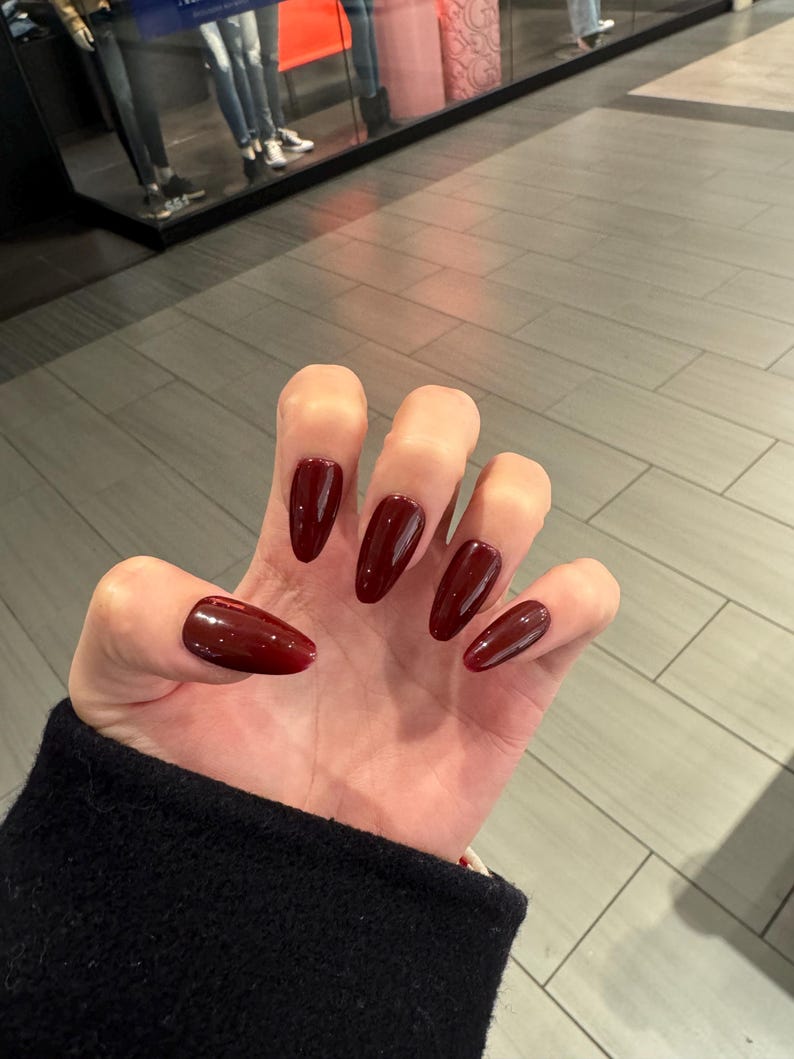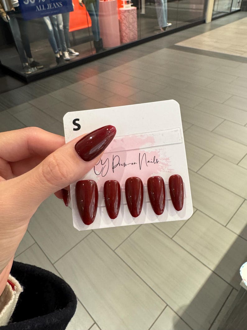 Burgundy Pure Wine Dark Red Color Medium Oval Almond Salon-quality Reusable Handmade Press-on Nails