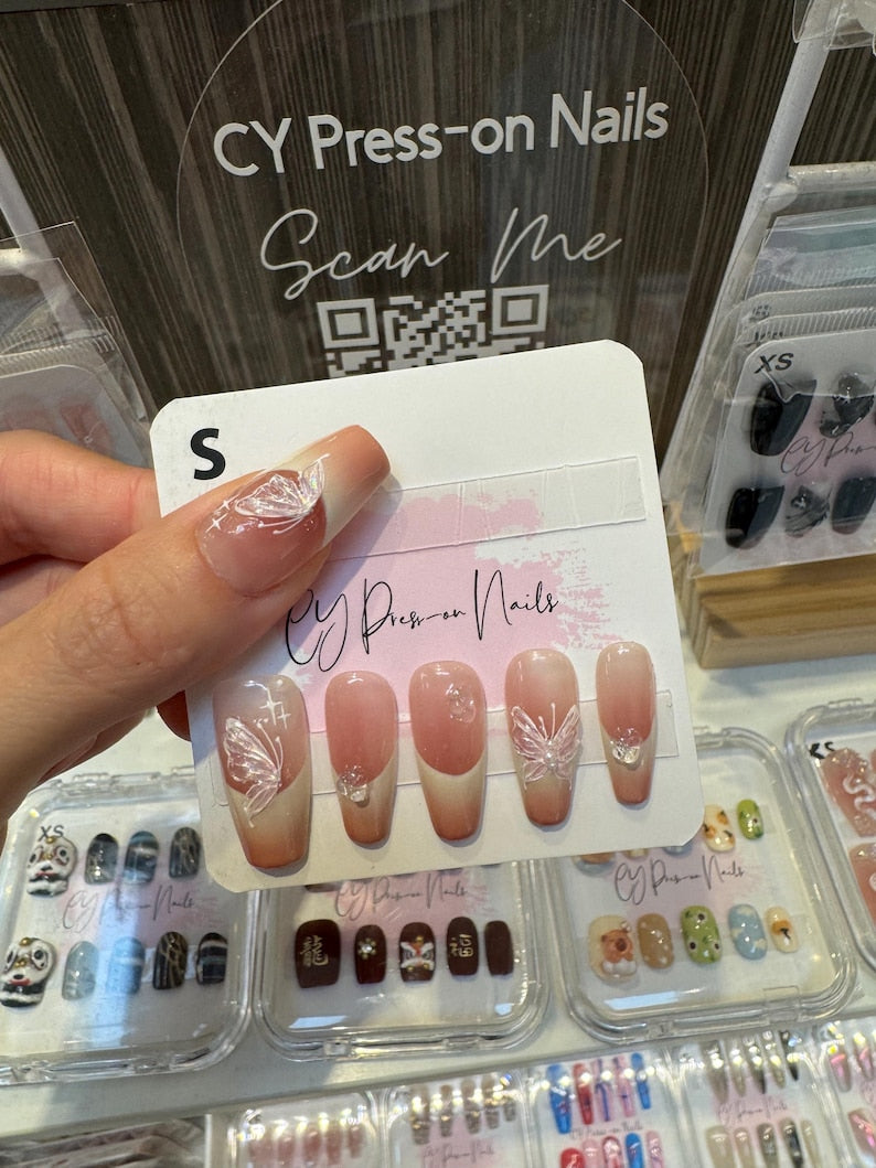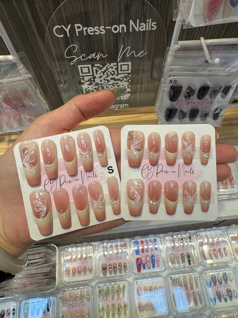 Butterfly Lovers Ombre Medium Long Coffin Salon-quality Reusable Handmade Press-on Nails