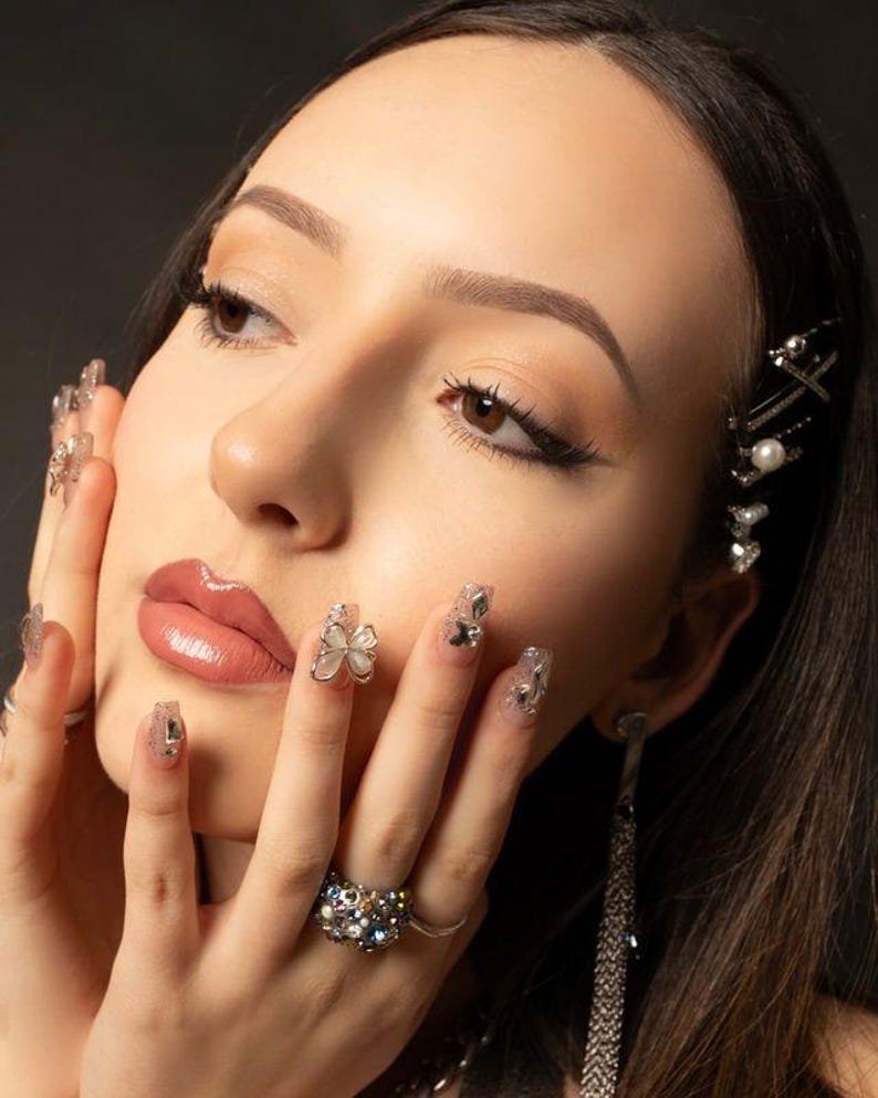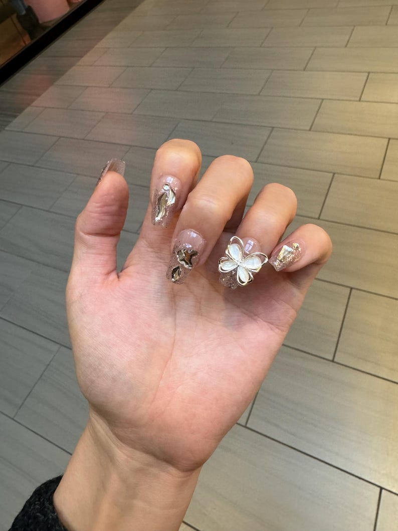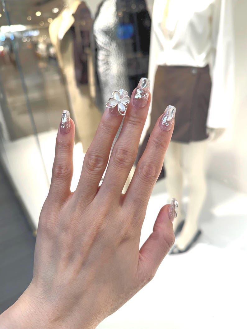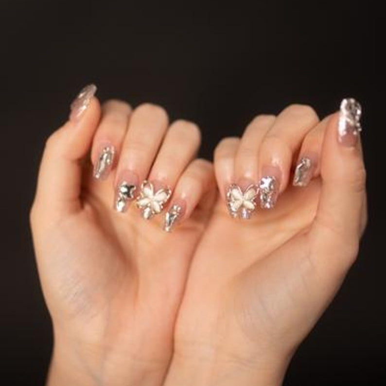 3D Ornament Nails Shiny Diamonds White Simple Neutral Color Nails Daily Handmade Reusable Salon-quality Press-on Nails Easy Apply