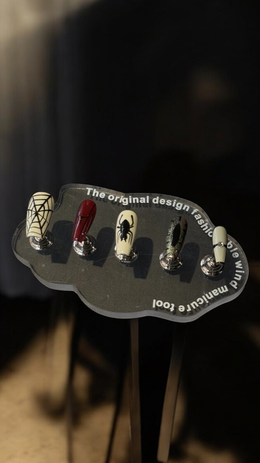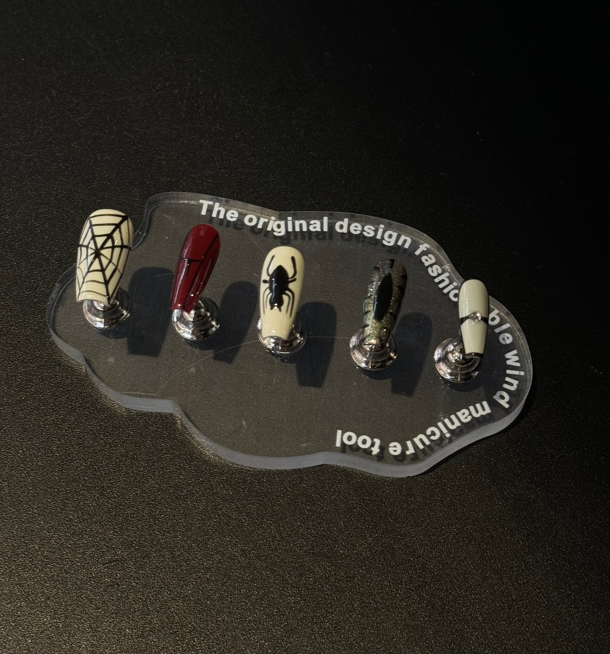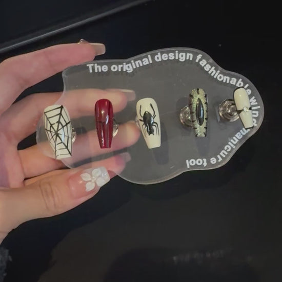 Gothic Spiders White Red Patina Bronze Cat Eye Nails Halloween
