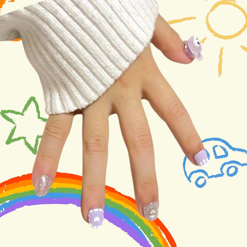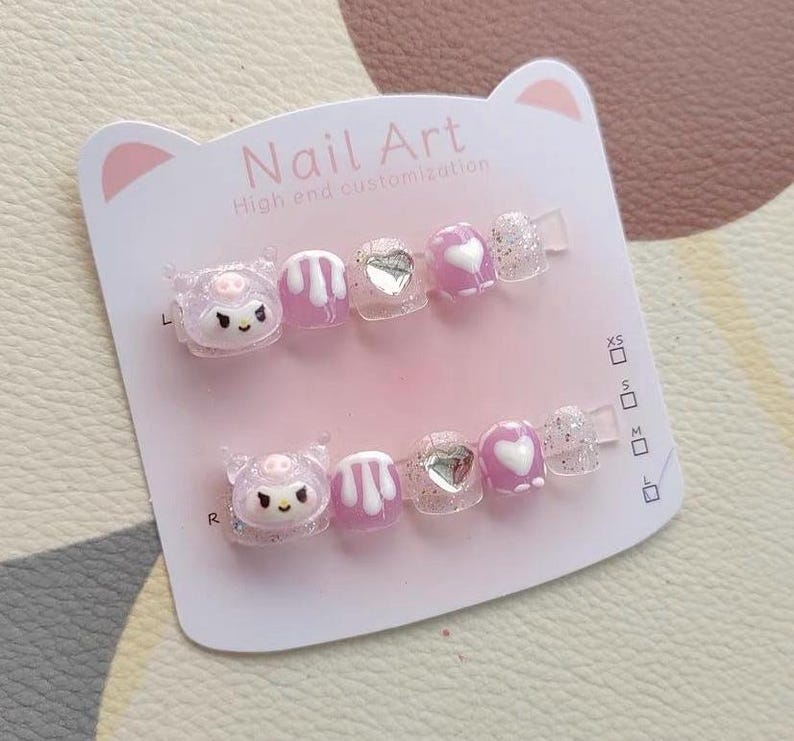 Cute Cartoon Clear Charms Kawaii Handpainting Salon-quality Reusable Handmade Press-on Nails Free Tool Kit