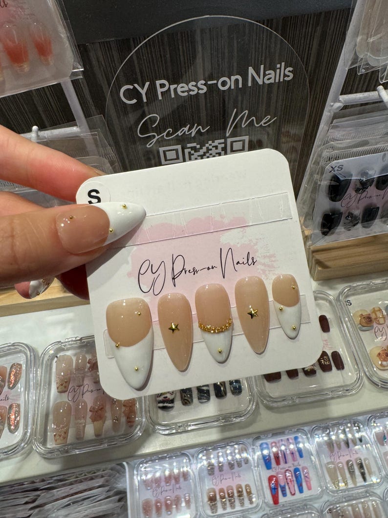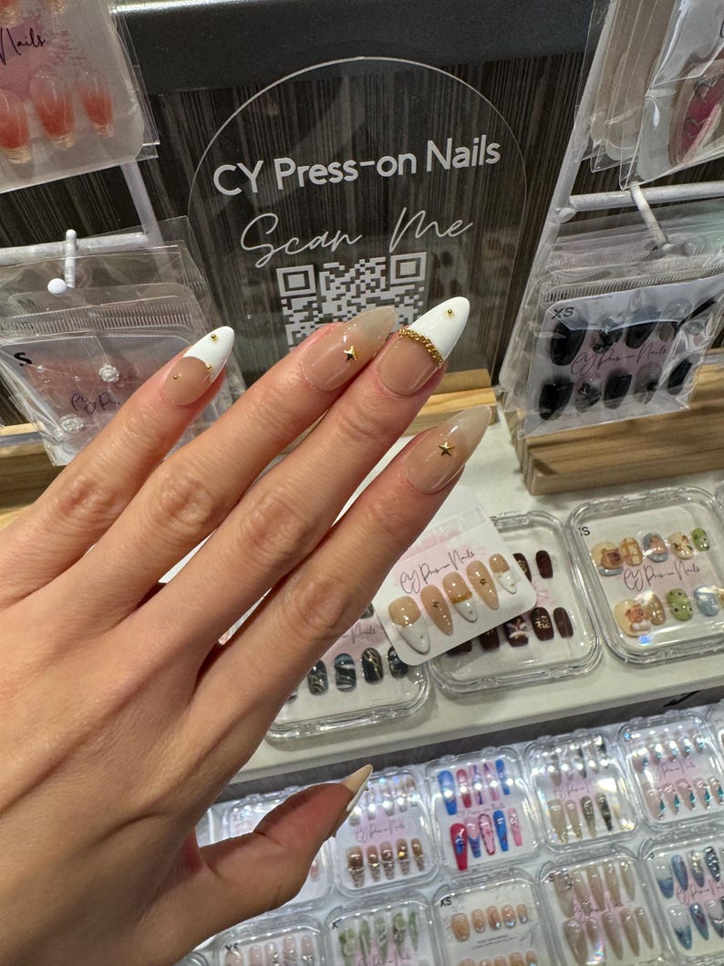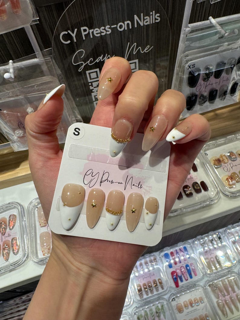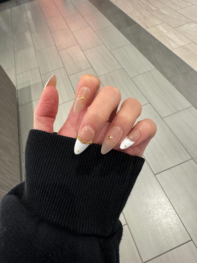 Moon and Star White French Tips Nails Medium Almond Nails Premium Salon-quality Reusable Handmade Press-on Nails Easy to Apply DIY Nails
