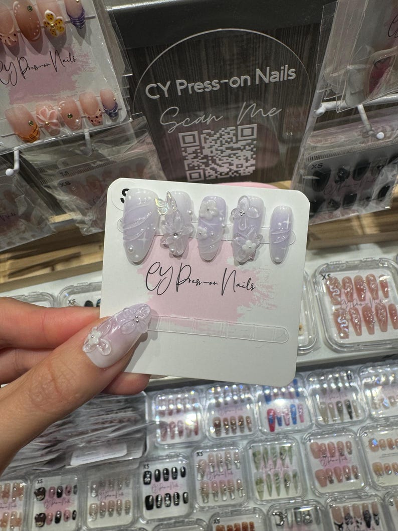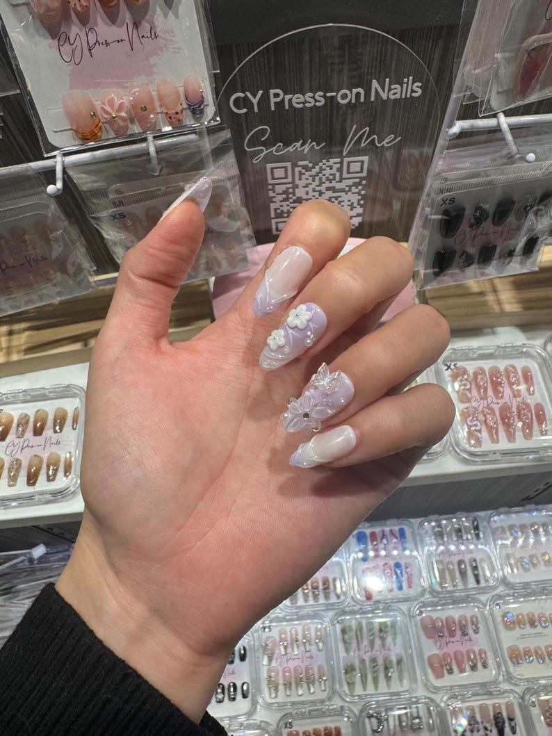 3D Spring Floral & Butterfly Nails | Medium Almond | Reusable Handmade Salon-Quality Press-Ons + Free Glue