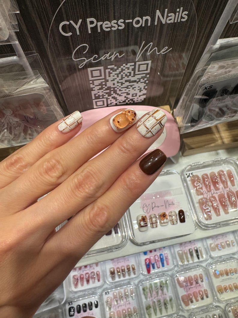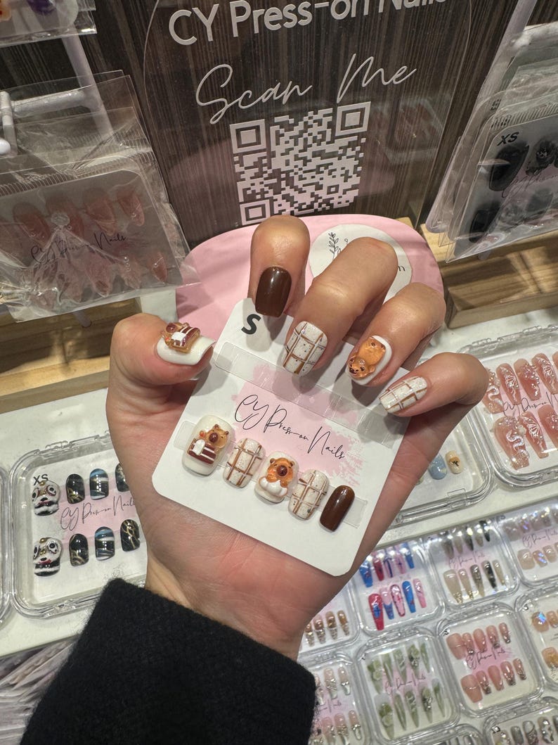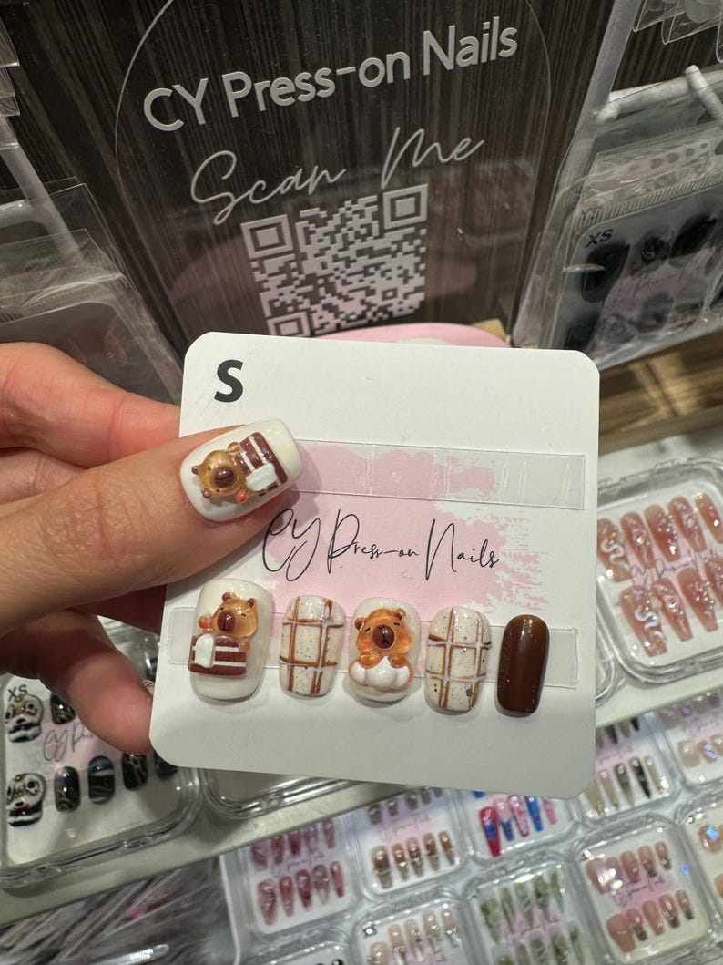 Showering Capybara Cartoon Brown Square Premium Salon-quality Reusable Handmade Press-on Nail