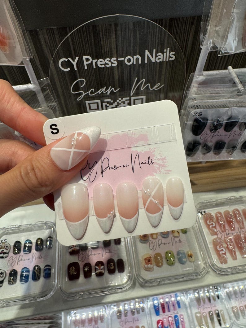White French tips Classic Medium Almond shape Salon-quality Reusable Handmade Press-on Nails
